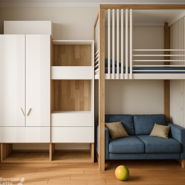 Детская комната для мальчика с кроватью-чердаком и рабочей зоной