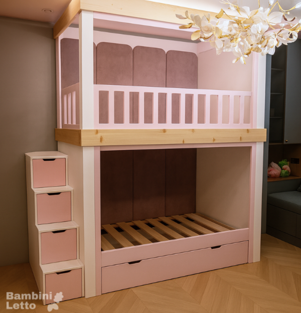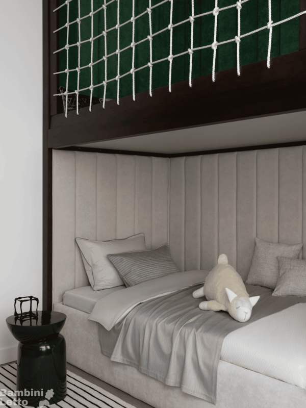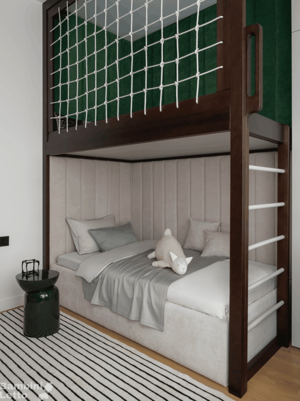 Двухъярусная кровать с мягким изголовьем