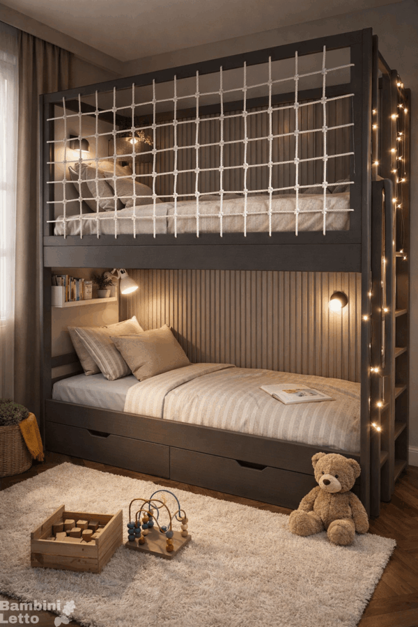 Двухъярусная кровать с канатной сеткой