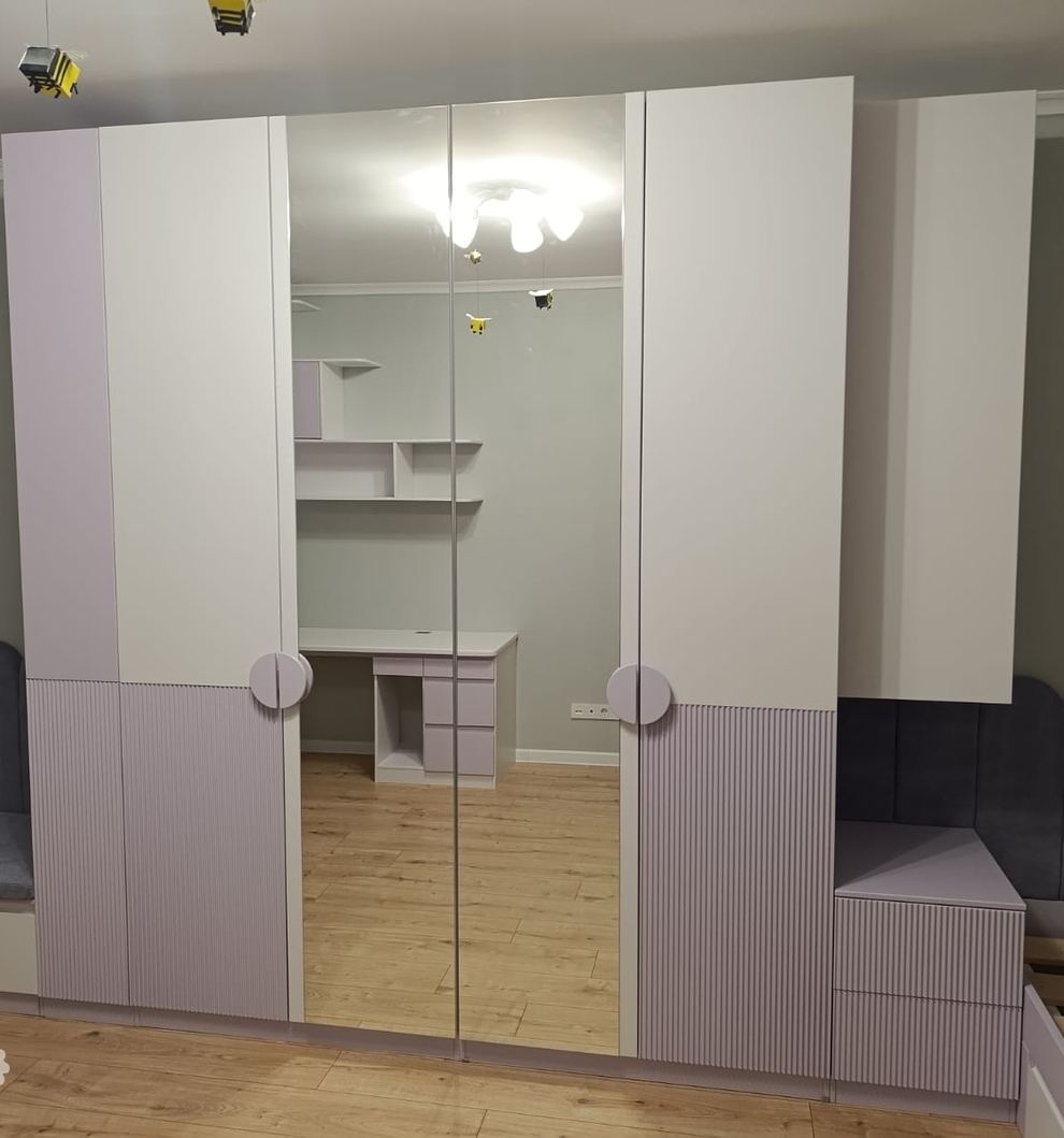 Описание : Позвольте вашему ребенку окунуться в мир изысканности и уюта с этой стильной мебельной композицией. Каждый элемент создан с заботой о гармонии интерьера и практичности, чтобы каждая минута в комнате была наполнена комфортом, вдохновением и радостью. Мягкие изголовья, функциональные шкафы и вместительные системы хранения — всё продумано до мелочей.