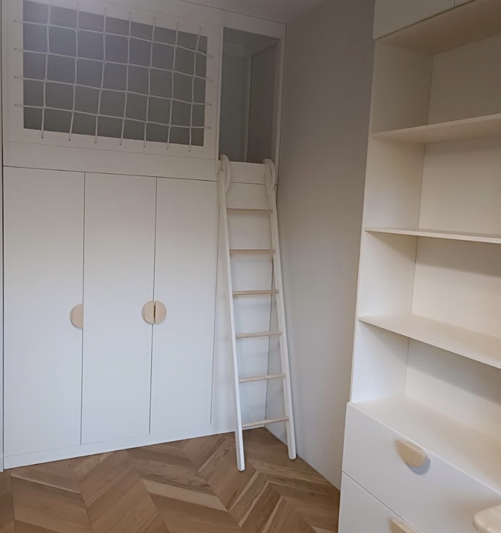 Детская комната для двух девочек с кроватью-чердаком и скалодромом Детская комната для двух девочек с кроватью-чердаком и скалодромом Артикул BL153Артикул BL153