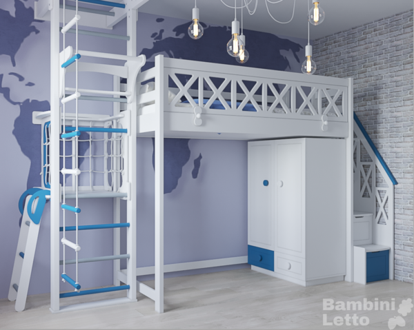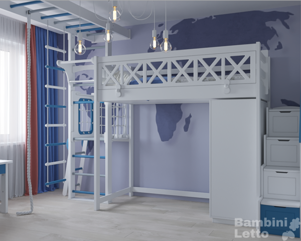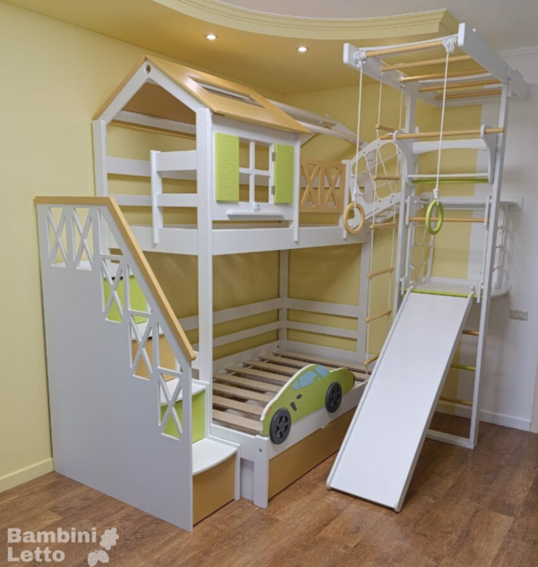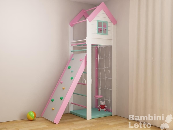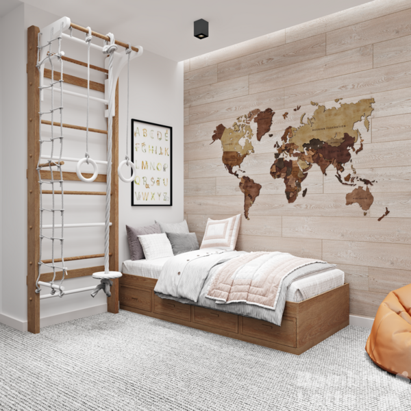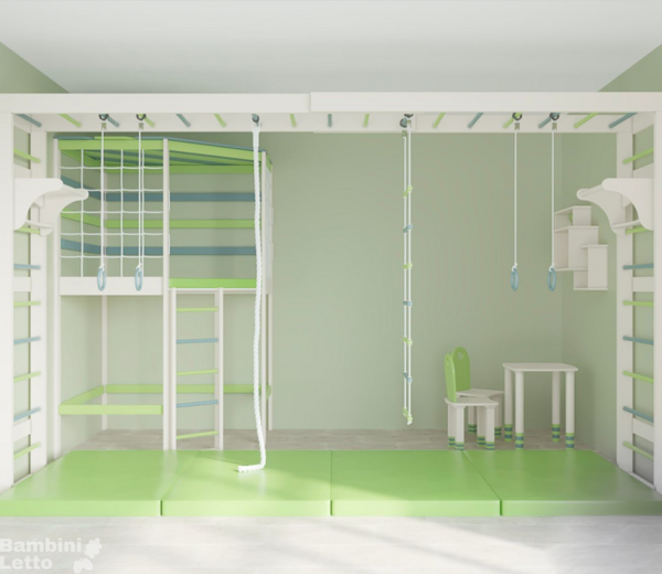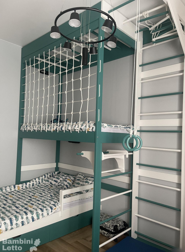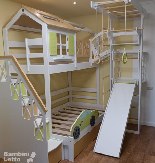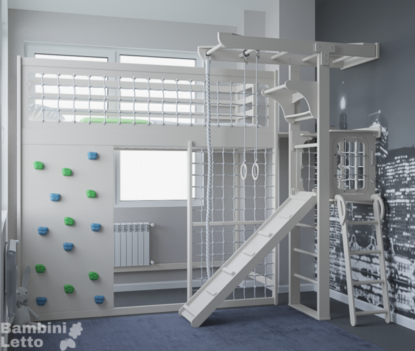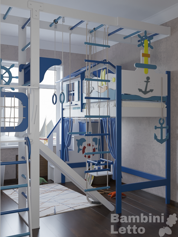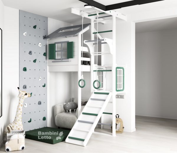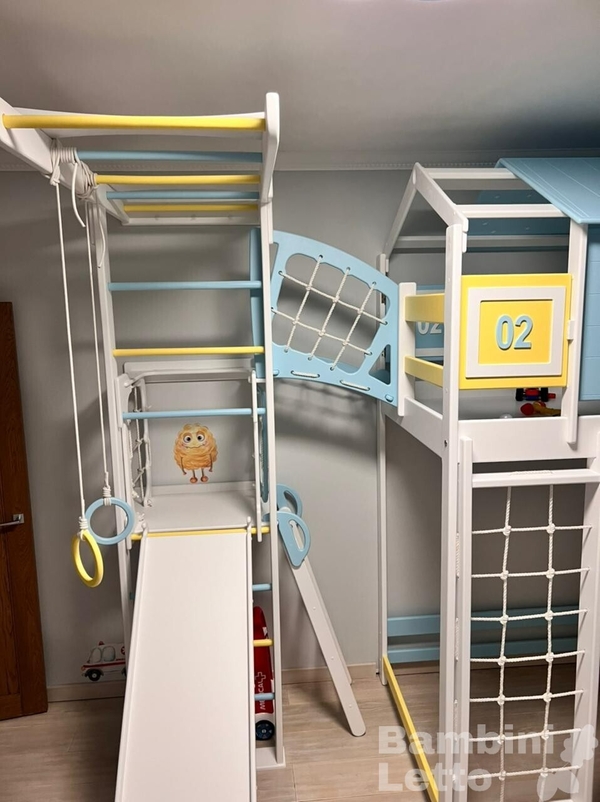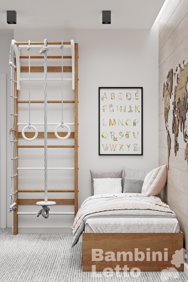 Комплект из массива дуба: подростковая кровать и спортивный комплекс