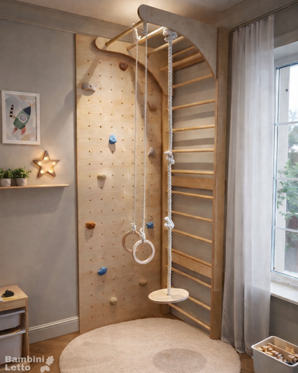 Скалодром с качелями и шведской стенкой